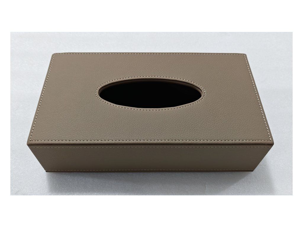 Zásobník na kosmetické kapesníky, koženkový, hnědo-béžový